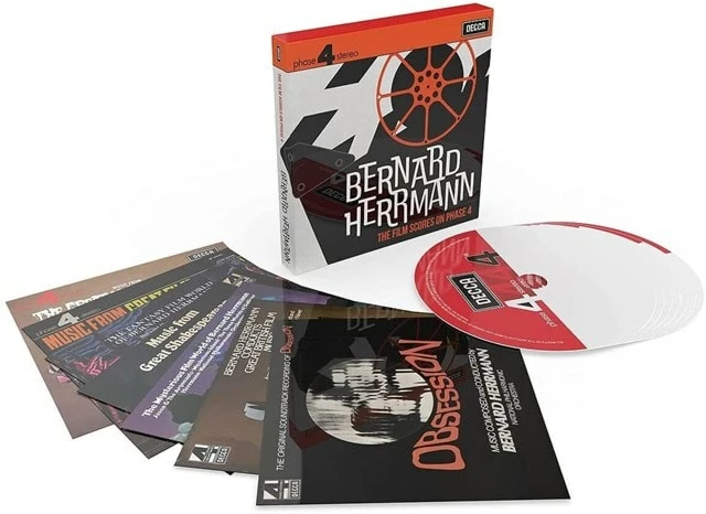 Bernard Herrmann’s complete film score recordings made for Phase 4 Stereo. Celebrating the composer’s 110th birthday, all albums have been remastered at 24bit 96kHz from the original analogue master tapes. 7 original albums presented in original sleeves and programming, featuring his classic scores for the Hitchcock films ‘Psycho’, ‘Vertigo’, ‘North by Northwest’, ‘Marnie’ and other thrillers. His scores from Great Films such as ‘Citizen Kane’, ‘Jane Eyre’, the Academy Award-winning ‘The Devil and Daniel Webster’, ‘The Snows of Kilimanjaro’, and the sci-fi and fantasy classics ‘Journey to the Centre of the Earth’, ‘The Day the Earth Stood Still’, ‘The Seventh Voyage of Sinbad’, ‘The Three Worlds of Gulliver’, ‘Mysterious Island’ and ‘Jason and the Argonauts’ are all included. Also included his Herrmann’s score for the 1975 film ‘Obsession’, Brian de Palma’s homage to Hitchcock’s ‘Vertigo’.
